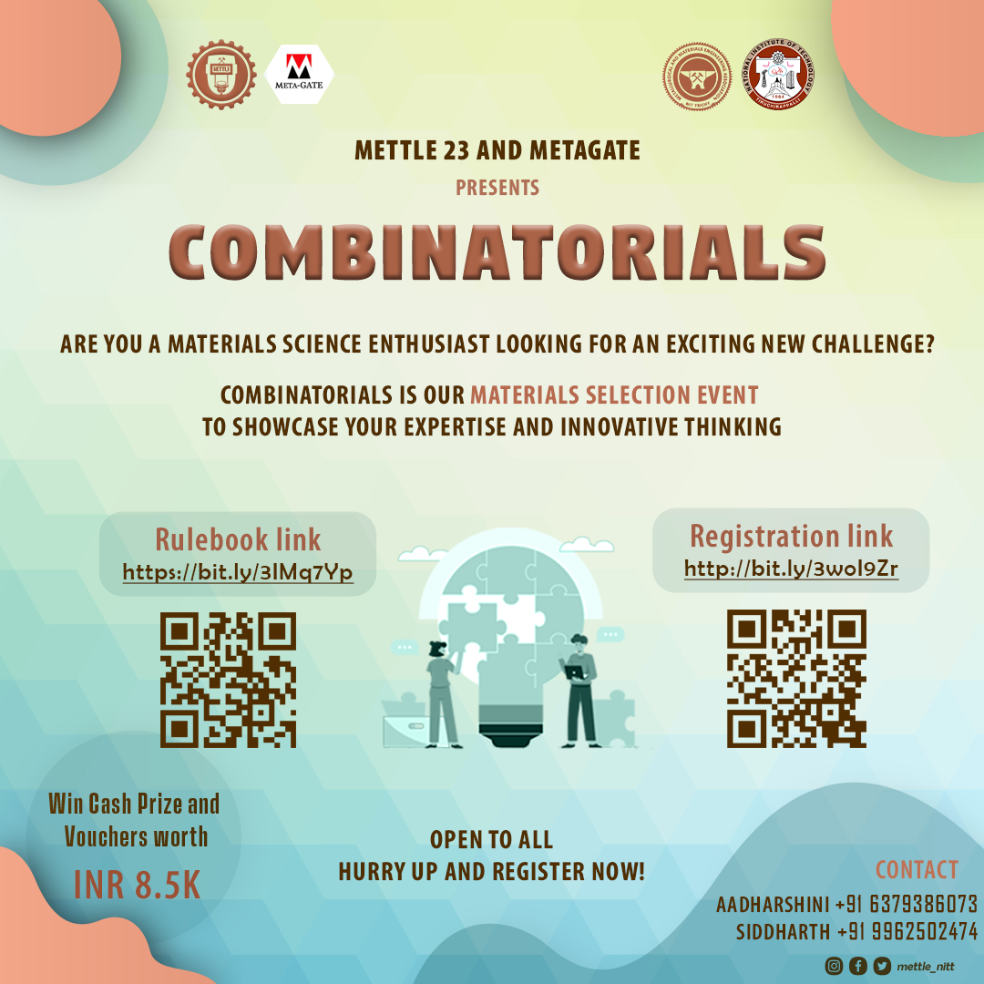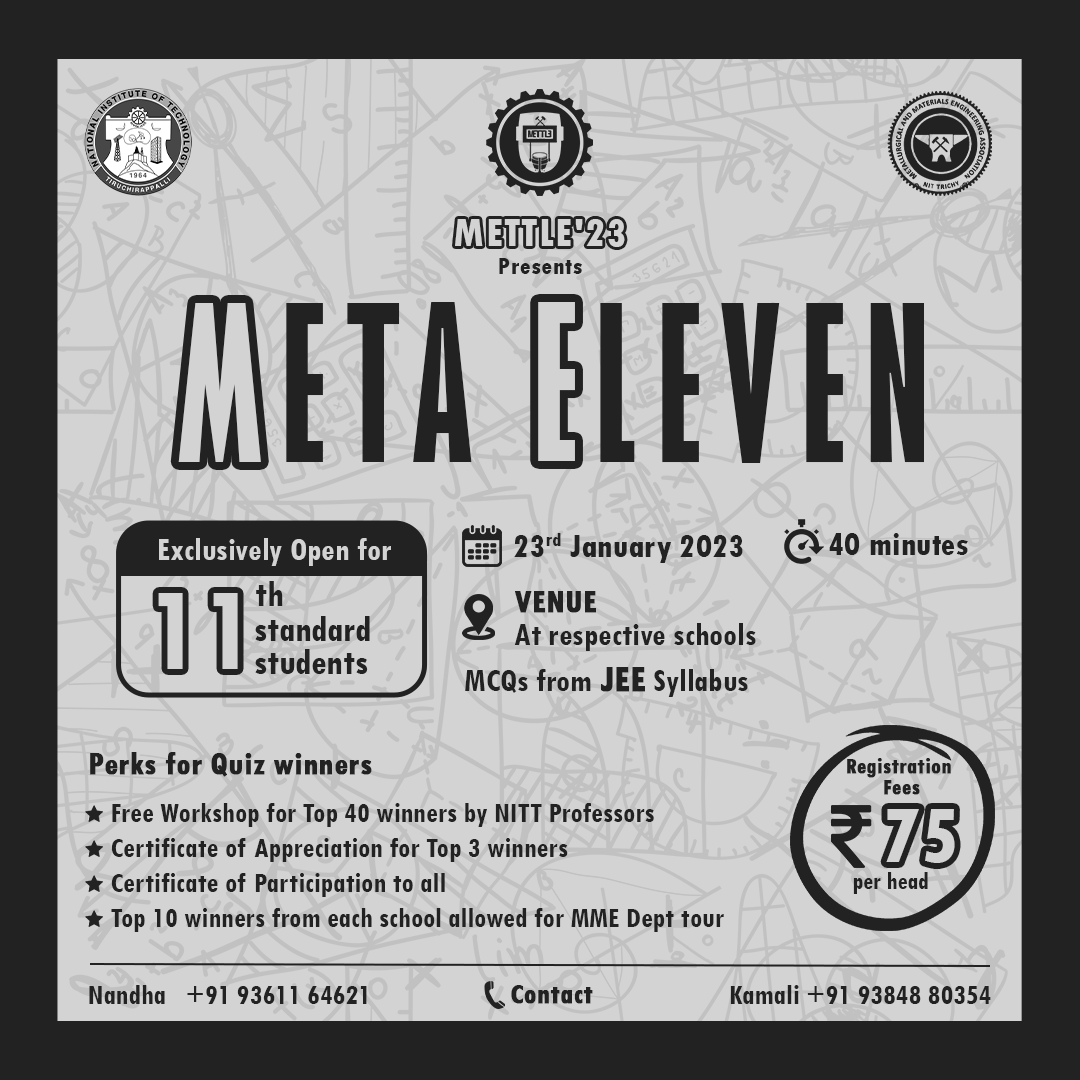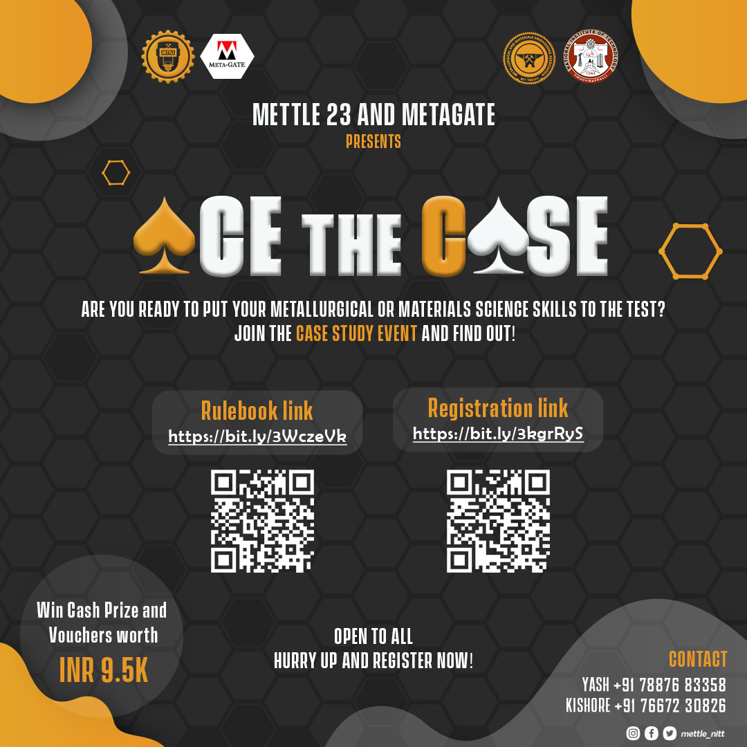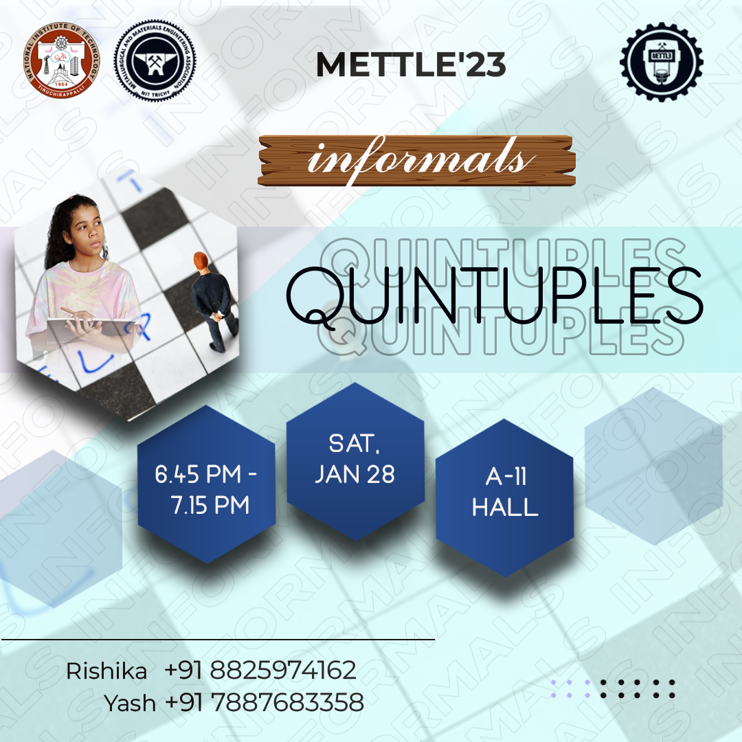 The teams whose participants drew chits with more than 3 metallurgy-related words will be considered further. The 2nd participant will be given a sheet with riddles, that correspond to the 10 metallurgy words in the chits. They'll have to find the answers to those riddles. The metallurgy-related words in the chits are the answers, so if they find 5 metallurgy-related words, they have an advantage. The participant with the highest score, i.e., the highest correctly answered riddle, is the winner. Ties will be resolved based on the maximum number of metallurgy chits they drew.